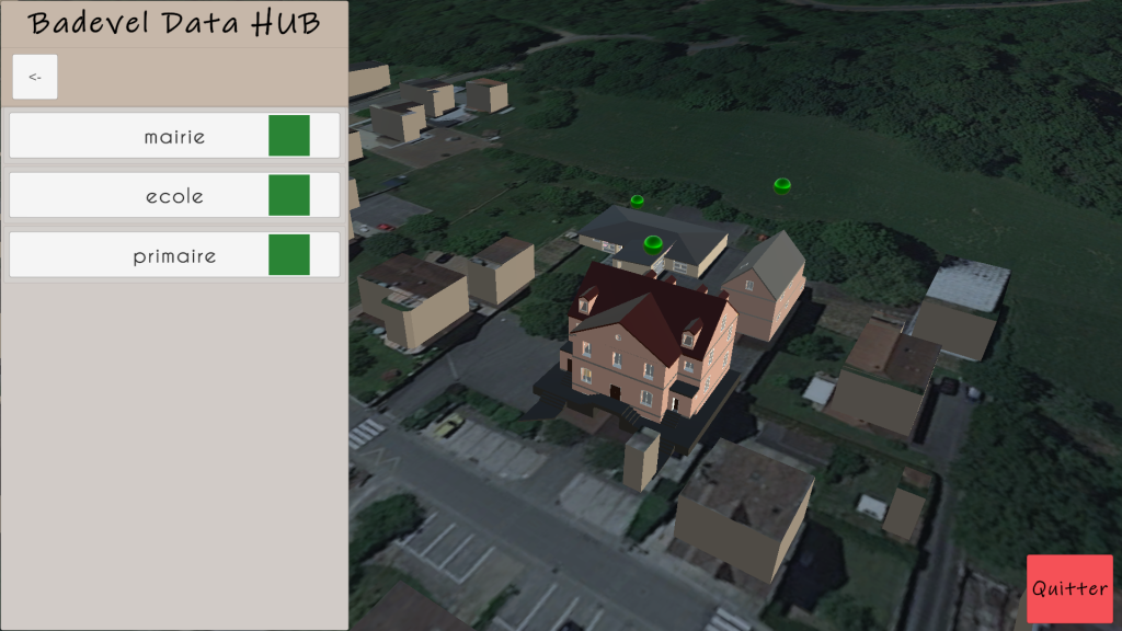 Conception d’un monde virtuel représentant la commune de Badevel, permettant la visualisation des données de capteurs (température, pression, etc.) pour favoriser une analyse efficace au sein du projet ‘Living Lab BADEVEL H2-Bois’.