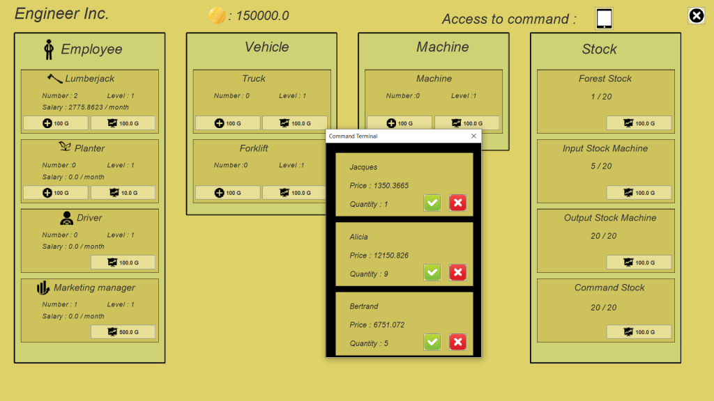 Jeu de simulation dont le développement avait pour objectif de nous apprendre la programmation orientée objet, d’utiliser des UML pour créer un programme organisé, lisible et facilement utilisable.